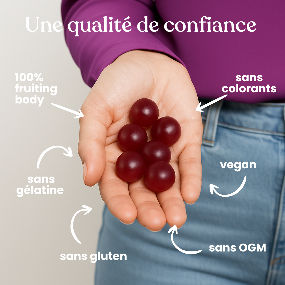 Les soirées deviennent plus apaisantes avec le Reishi dans votre routine — favorisant la détente et un sommeil nocturne de meilleure qualité.